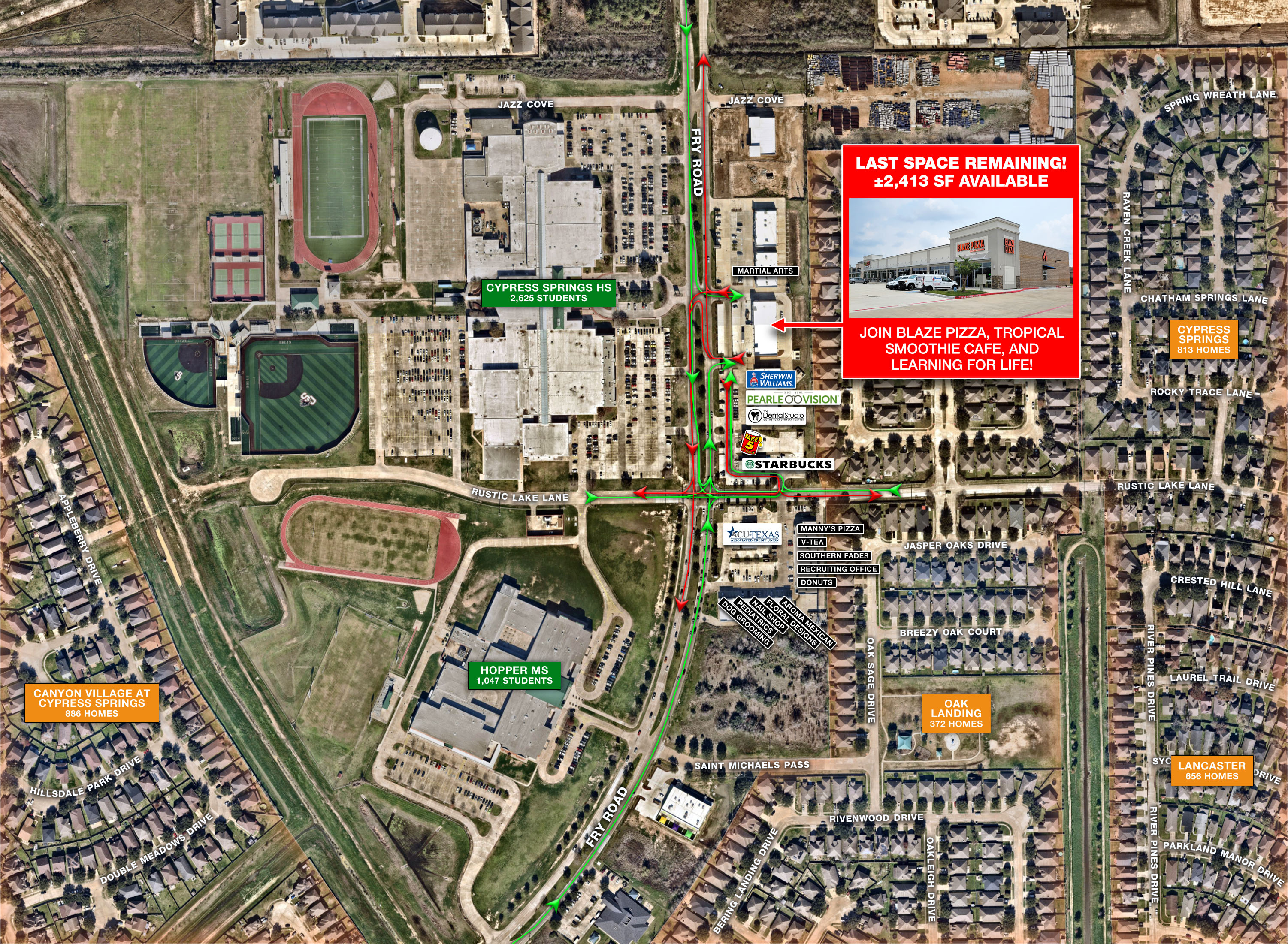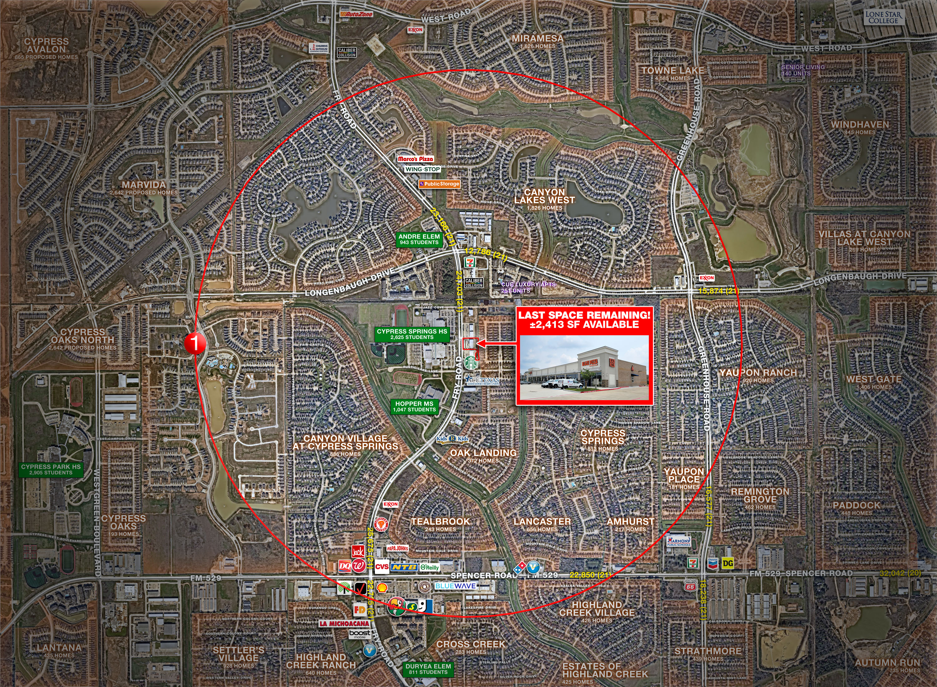 - Across from Cy-Springs High School and positioned in Cy-Fair ISD, the 2nd largest school district in the market