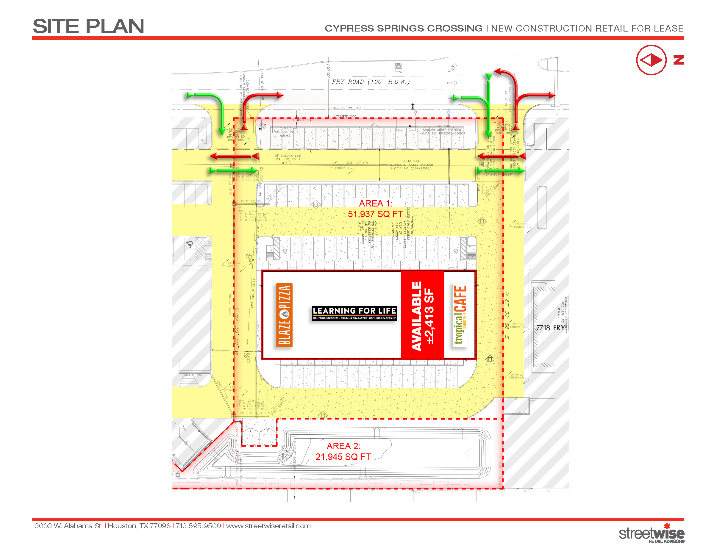 - Left in, left out with 214' of frontage on Fry Rd