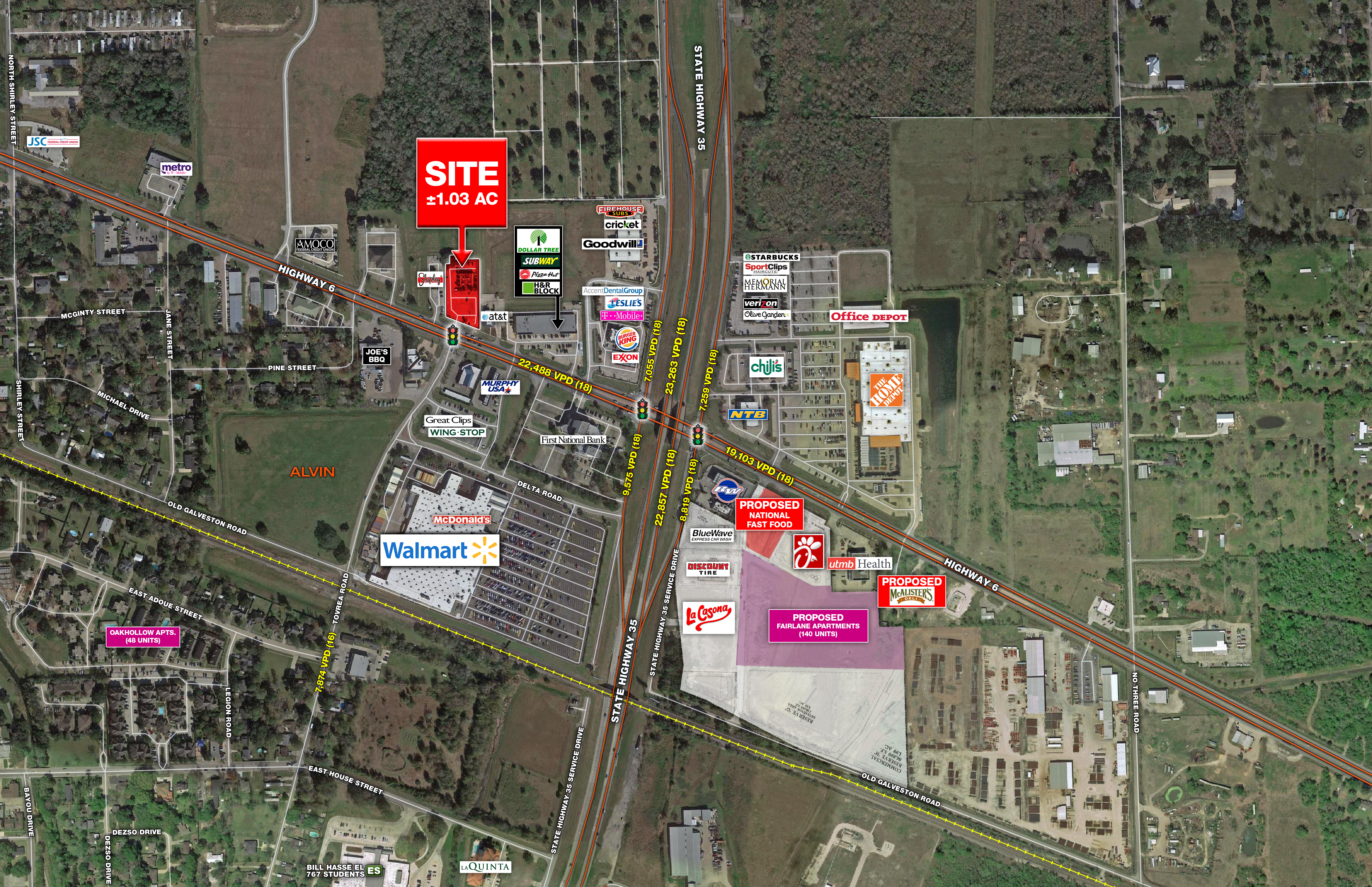 - ±1.03 Acres located 880 feet away from Highway 35 southbound exit.