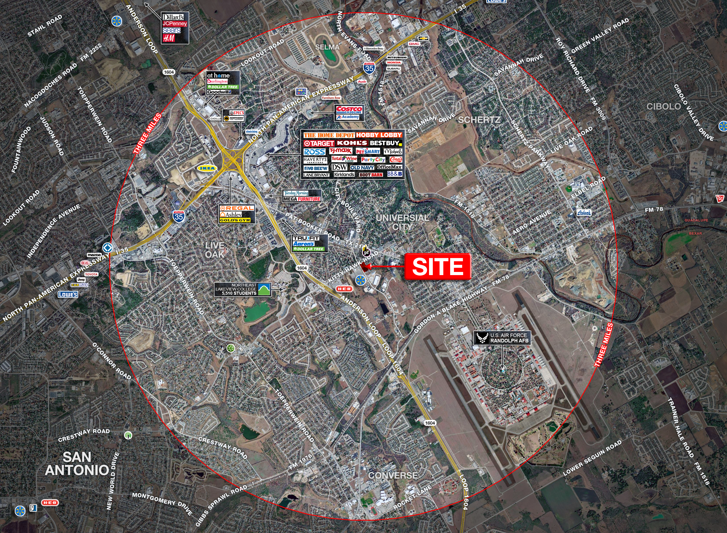 Established trade area surrounded by housing, major retail developments, and the Randolph AFB U.S. Air Force Base